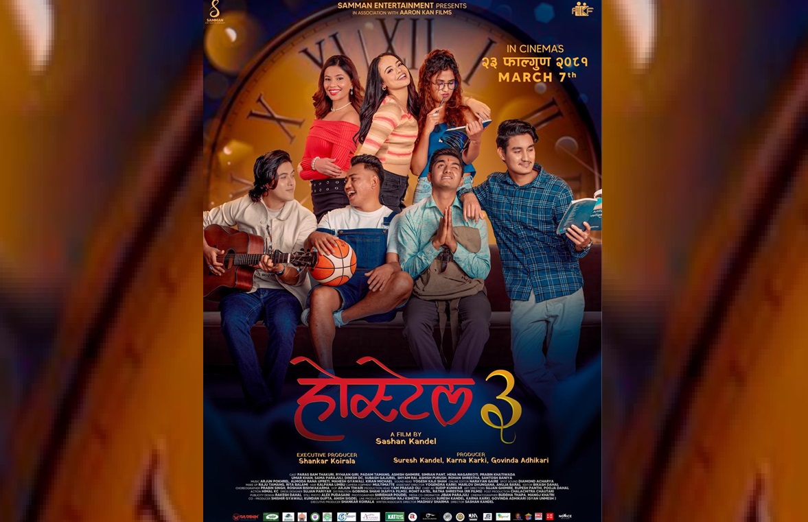 फिल्म ‘होस्टेल ३’ फागुन २३ गतेदेखि प्रदर्शन हुने भएको छ । उक्त फिल्ममा मख्य अभिनेताका रुपमा आशिष घिमिरे, पारस बम, रिहान गिरि, र पदम तामाङ छन् भने अभिनेत्रीहरूमा सिम्रन पन्त, हेना नगरकोटी र समा पराजुली छन् । फिल्मले क्याम्पस जीवनका संघर्ष र मित्रतालाई उठान गरेको छ । सशान कँडेल सन्तोषको निर्देशन रहेको यो फिल्ममा सुरेश कँडेल, कर्ण कार्की र गोविन्द अधिकारी निर्माता र कार्यकारी निर्माता शंकर कोइराला हुन् । सहनिर्मातामा शिशिर ज्ञवाली, कुन्दन गुप्ता छन् ।